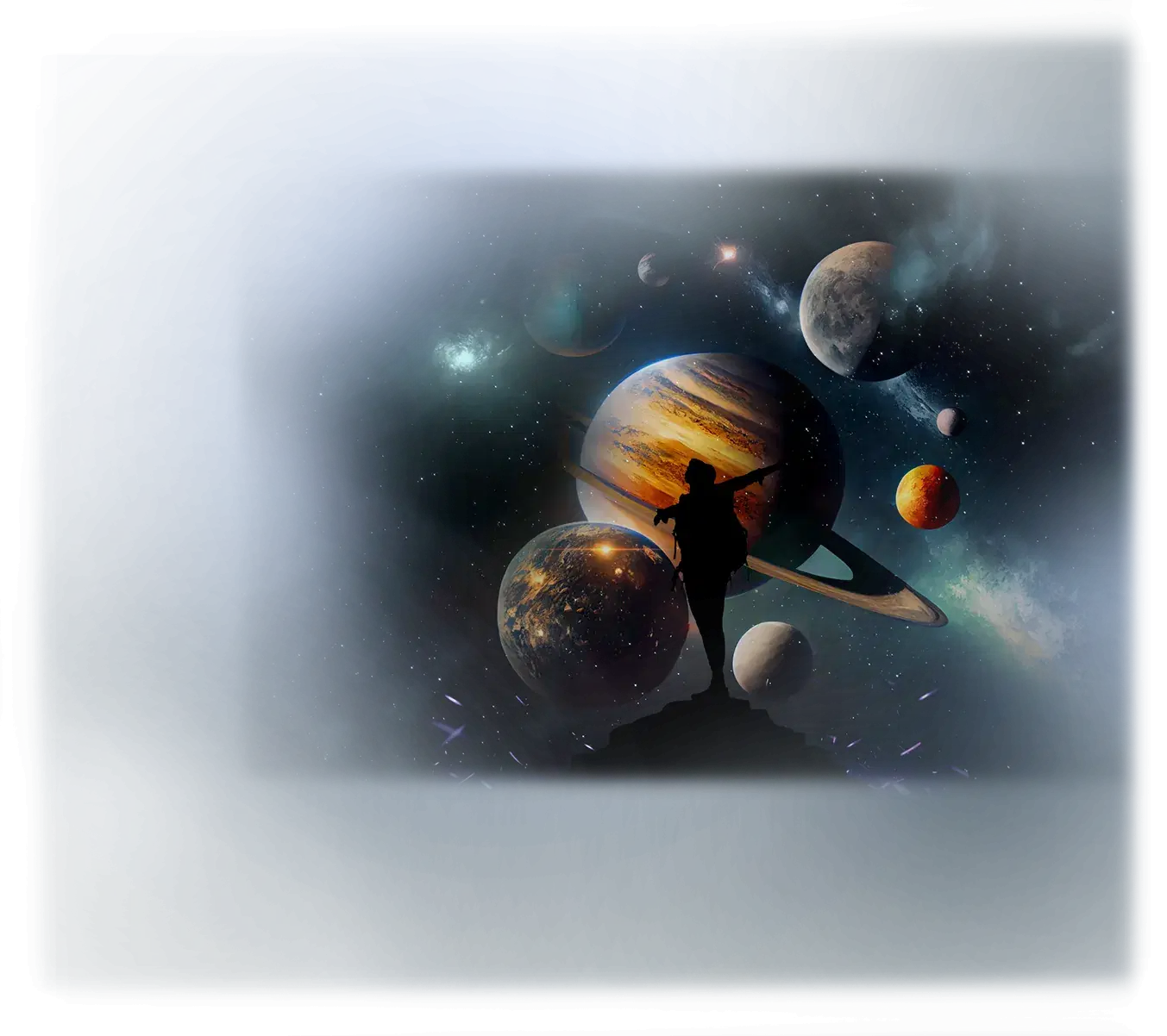 Invoke the transconscious immensity of each planetary being—from the Sun to Pluto—by imagining them at the distance of the Moon, where their vast size and energy can be felt viscerally and psychically.