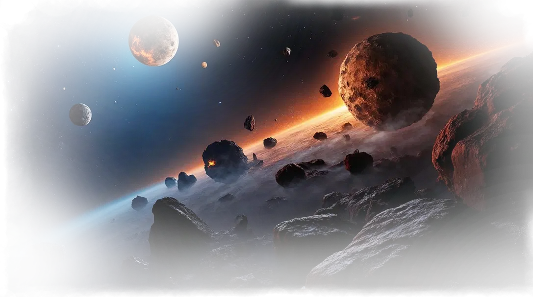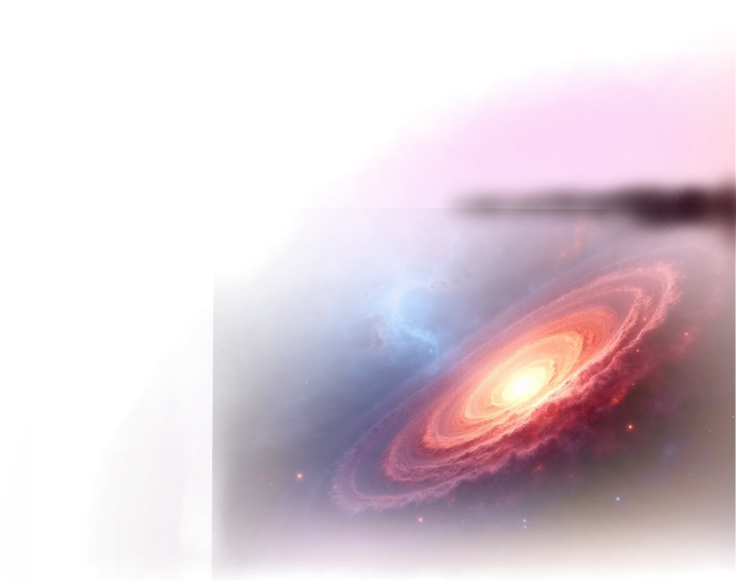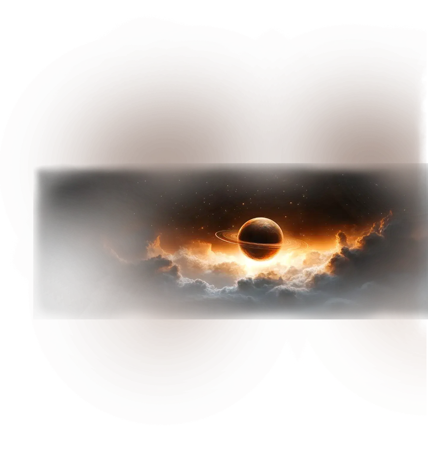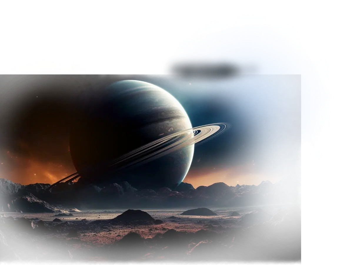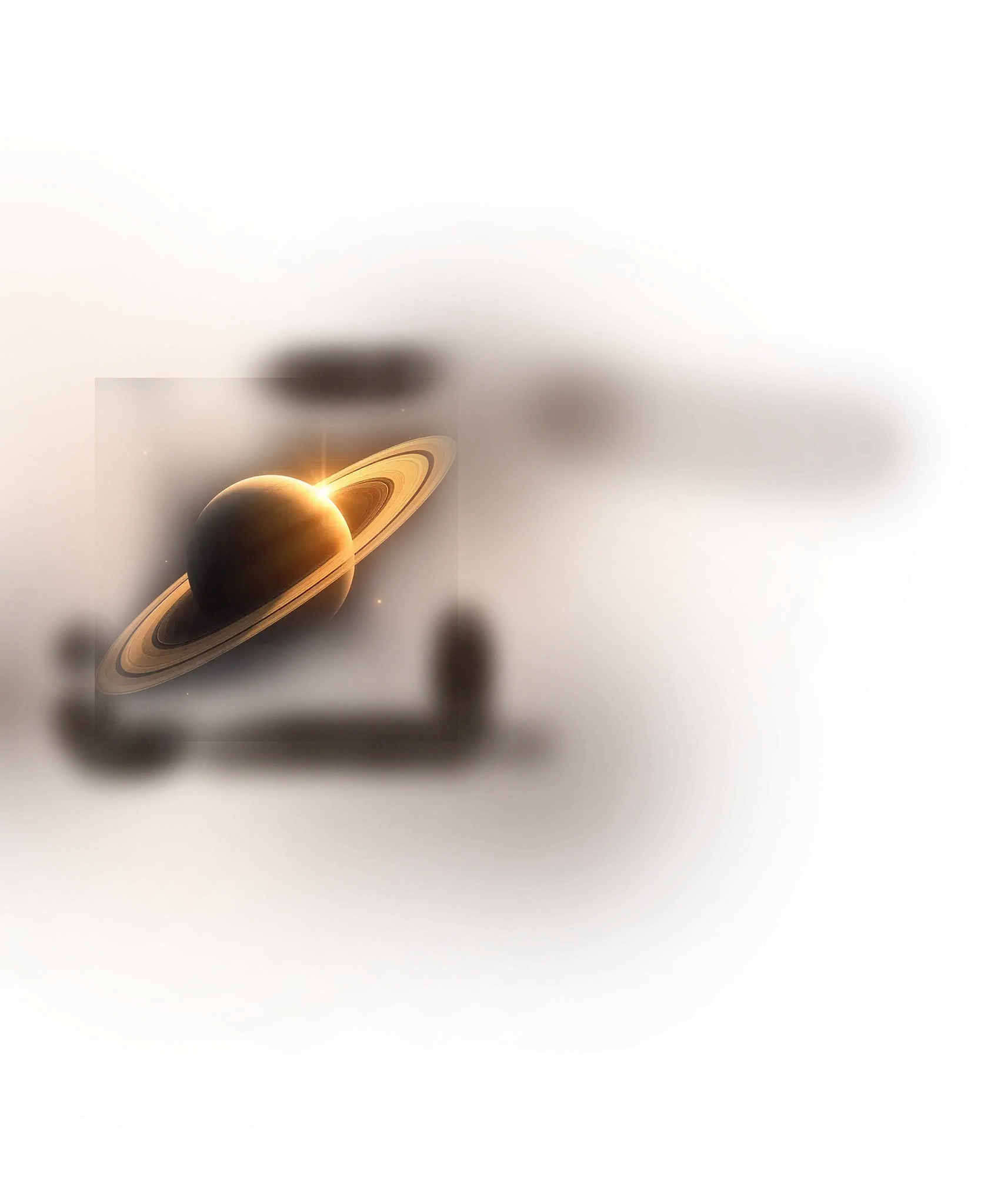 Now Saturn appears before you at the distance of the Moon—a massive sphere glowing with a solemn golden light, encircled by vast, majestic rings that stretch across the heavens like a cosmic crown. These rings are not solid bands but composed of countless icy fragments, from tiny specks to enormous blocks of ice and rock, each tracing a perfect orbit with delicate precision. Their shimmering dance is a testament to cosmic harmony, an eternal ballet of structure and repetition.